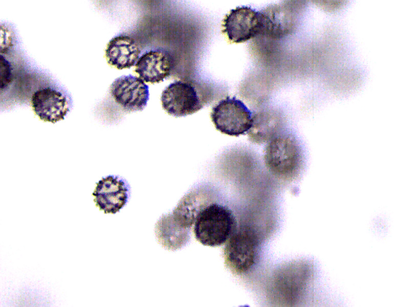 - Spores avec des verrues reliées en réseau , taille 7-8.5 x 6.5-7