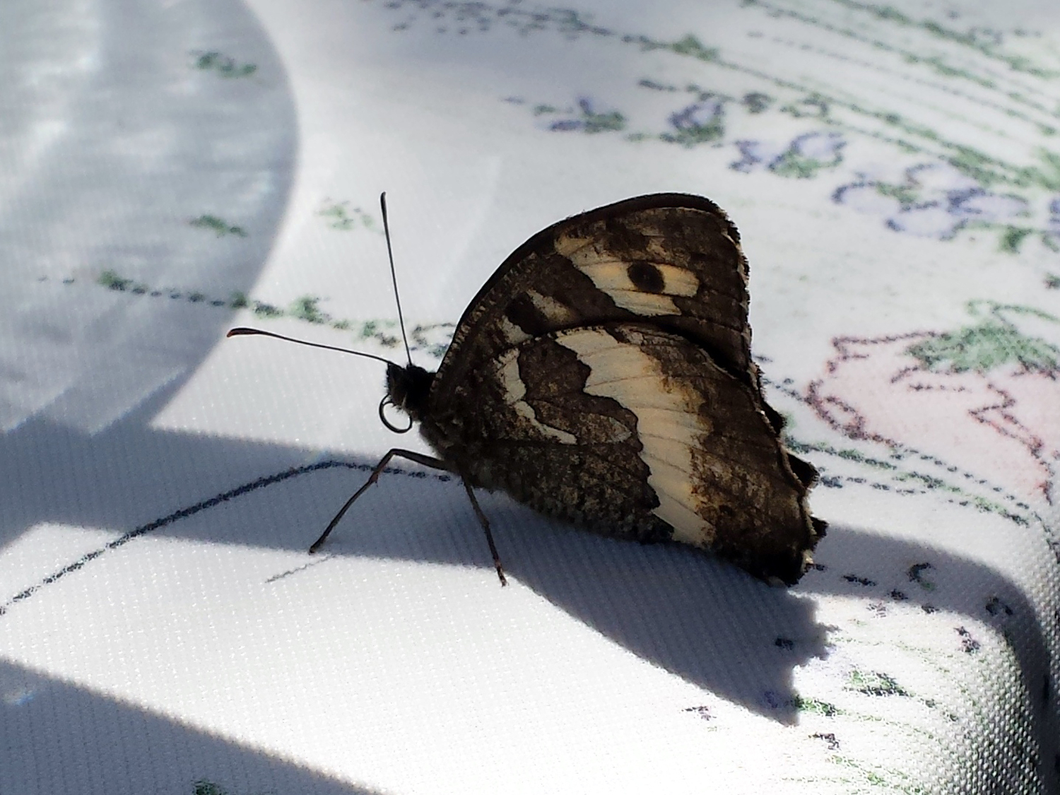 Palombaggia (C-du-S) 16/06/18, sur la terrasse, ce papillon peu farouche s'est invité à la table du déjeuner. Hélas je n'ai pu le photographier qu'ailes fermées et à contre-jour. Peut-on tout de même lui donner un nom ?