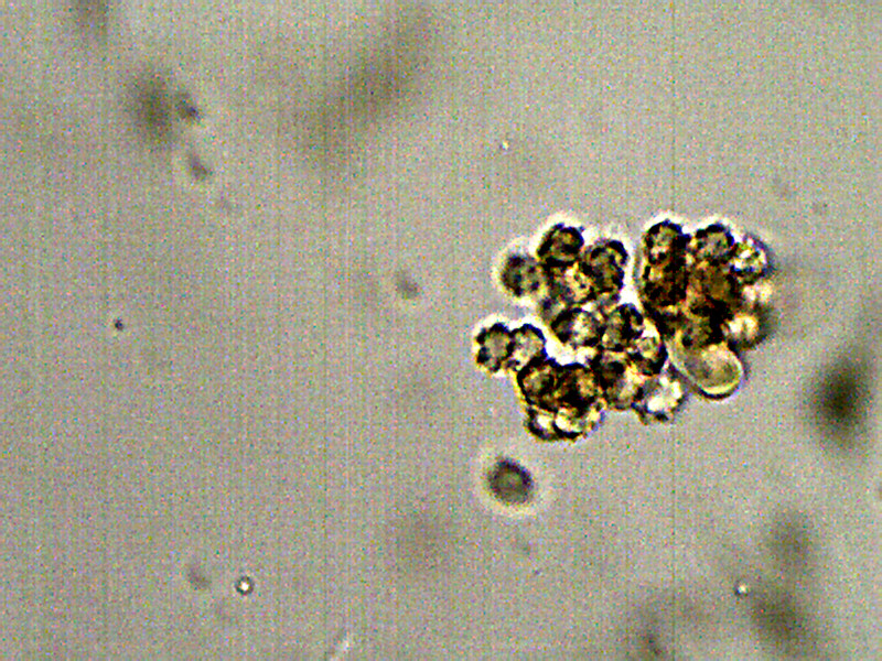 J'ai mis deux photos pour tenter de se rendre compte, l'une avec des spores isolées et l'autre aglutinées.