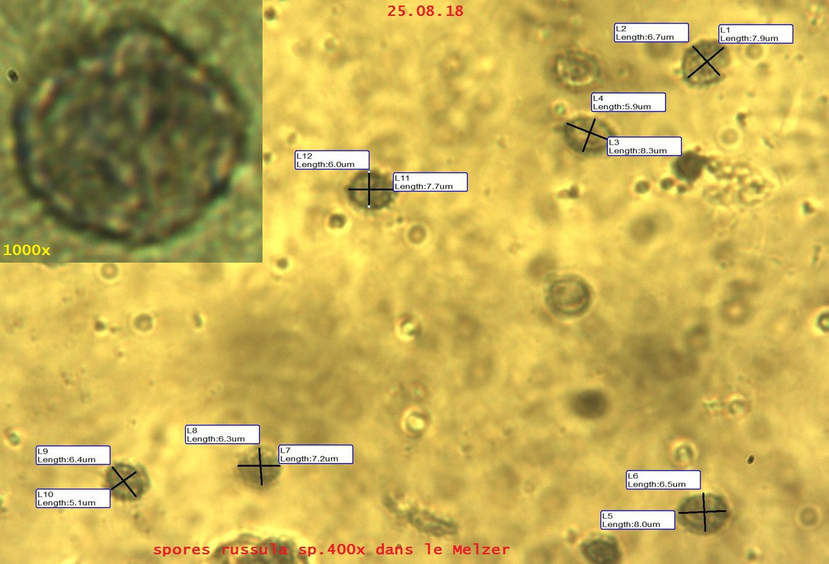 Cette petite russule que j'ai mis à sporuler sur un lame toute la nuit en ambiance humide, ne m'a rien donné le matin.