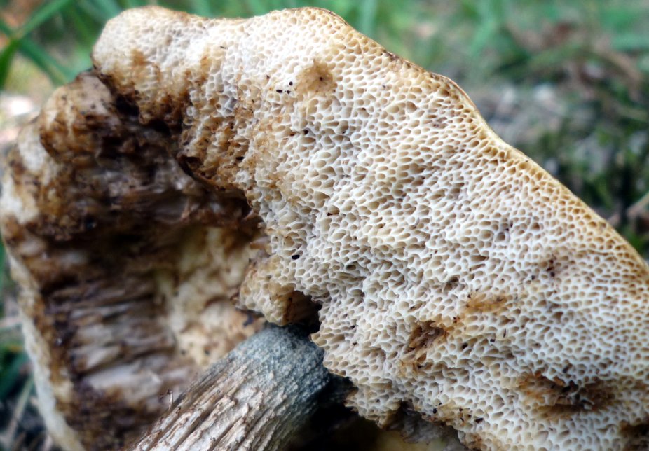 Tu as une vue complète du pied ? Tu as goûté ? Comme je vois des pores larges vaguement rosés, une dépression autour du pied et une ébauche de réseau, je veux éliminer Tylopilus felleus, quoique ce ne soit pas trop son habitat. Sinon, L. molle ou juste un vieux scabrum, je ne sais pas dire. Tu n'as pas un exemplaire plus frais, je suppose ?