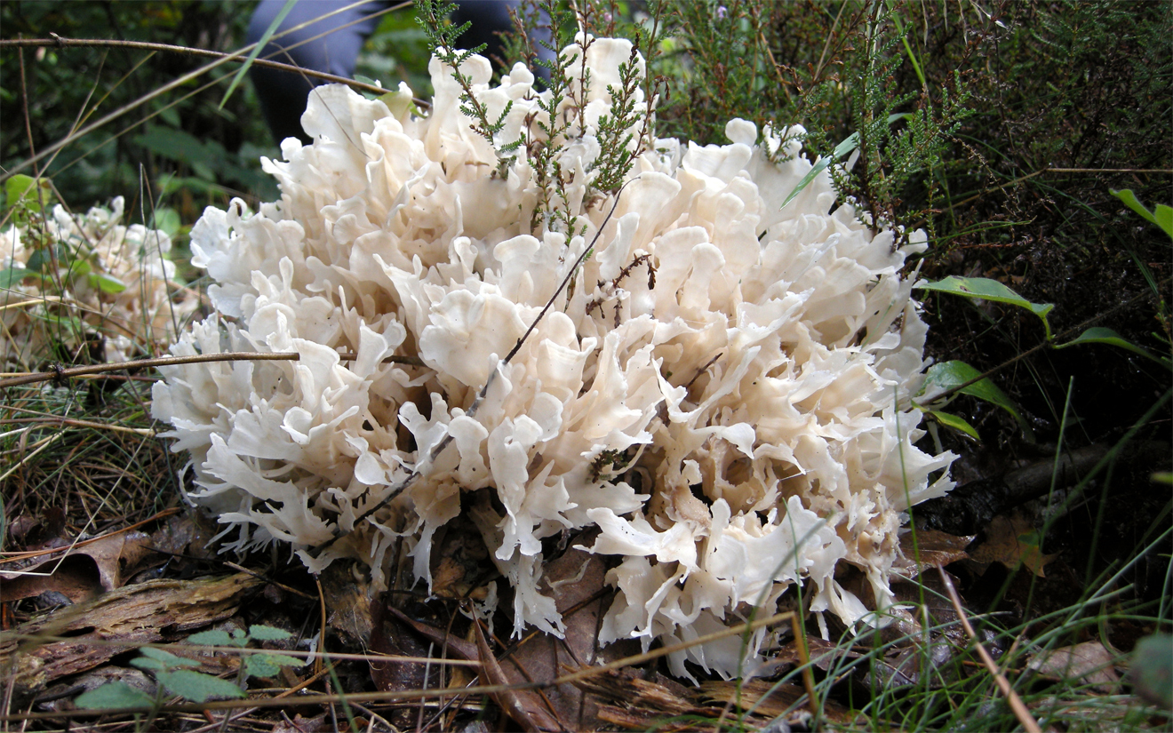 Oui, c'est bien Sparassis brevipes, naguère nommé de manière plus parlante Sparassis laminosa comme l'a indiqué Richmond. En effet les Sparassis communs en France, crispa et brevipes, ont tous deux le pied court, voire nul. L'un est plus serré et crépu, l'autre plus aéré et en lamelles. Quant à leur écologie, il suffit de regarder les photos de MycoDB pour constater qu'elle ne correspond pas toujours à celle indiquée dans les livres. Ici en forêt de Sénart (Essonne) le 15/09/13, sous pins et chênes, sans doute sur souche de pin :