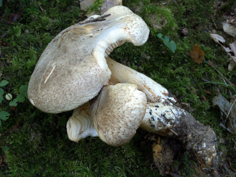 La couleur un peu jaune ou presque "beurrée" des lames m'a fait penser à Leucopaxillus compactus , un gros champignon comme ici.