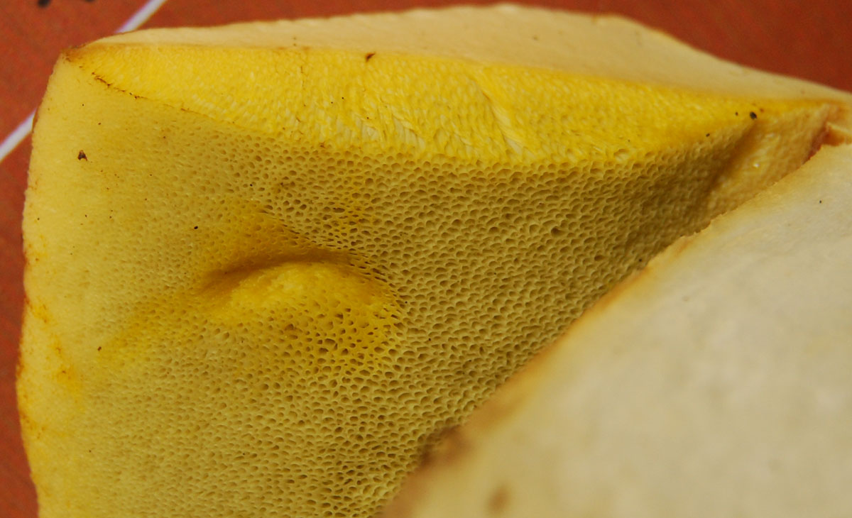 Butyriboletus : revêtement beurré quand il est humide et pores presque invisibles jeunes à cause d'un bourrelet