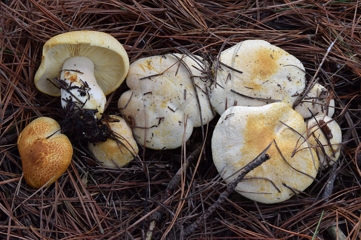 Fifi a écrit :Cette espèce a également été retrouvée en Europe plusieurs fois (France et Espagne) et pousse sous les pins. Et effectivement, l'insertion des lames ne colle pas.NSchwab a écrit :Il y a une dernière espèce qui pourrait éventuellement coller macroscopiquement, Cantharocybe gruberi, mais ses spores ne sont pas amyloïdes.Espèce américaine à lames décurrentes.