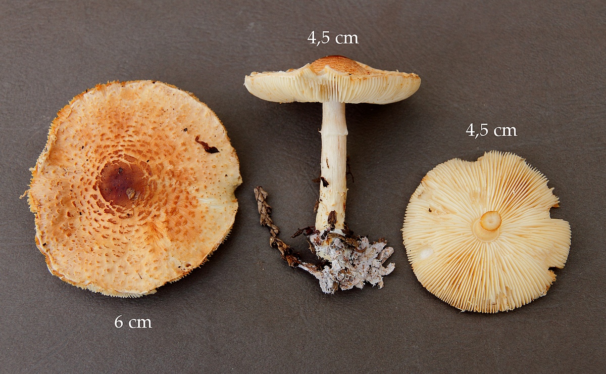 Jean-Luc Picard a écrit :Avec des squames au centre ?ustal a écrit : Jean-Luc, une volvaire peut-être mais avec des lames si colorées et des nuances orangées dans tout le champignon?Si, si : c'est l'aspect typique de V. gloiocephala dans la vétusté.