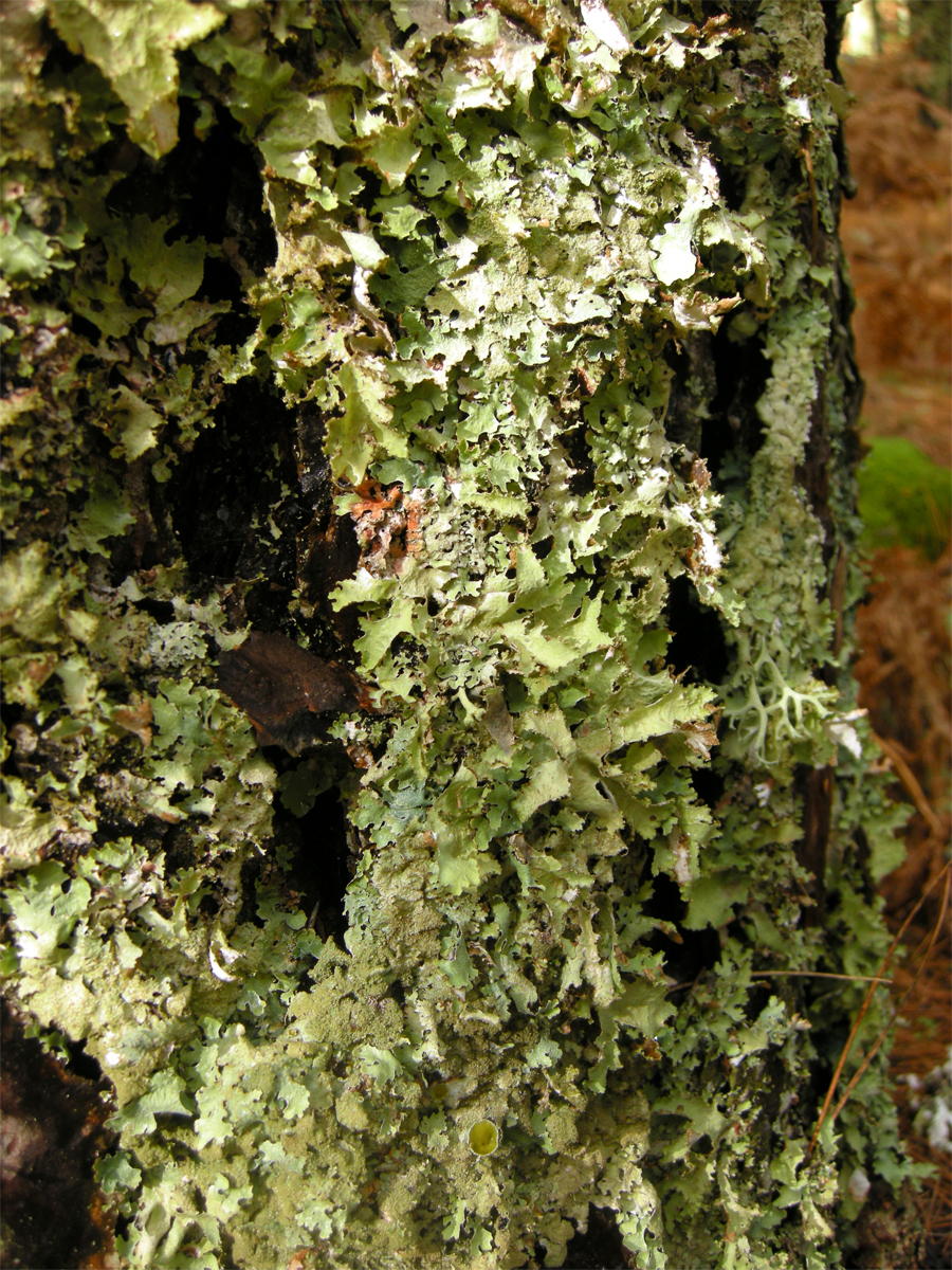 Pour en revenir à la photo n°1, en dessous de Platismatia glauca, se trouve un Parmelia, surement Parmelia saxatilis, mais ne pouvant être distingué sérieusement de deux autres espèces très proches : Parmelia ernstia et Parmelia serrana.