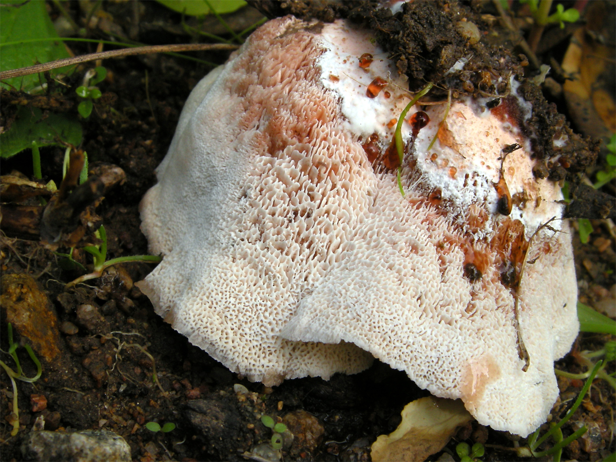 Dans ce contexte de novembre 2018 où tout poussait partout, ce polypore croissait au milieu de l'allée dont, il faut dire, des creux avaient été comblés par du broyat. Il s'agit bien d'Abortiporus biennis (Bull. : Fr.) Singer, espèce nommée Boletus biennis en 1789 par Jean Baptiste François Pierre Bulliard (24/11/1752-26/09/1793), "sanctionnée" par Elias Magnus Fries en 1821 sous le nom Daedalea biennis et recombinée Abortiporus biennis en 1944 par Rolf Singer.