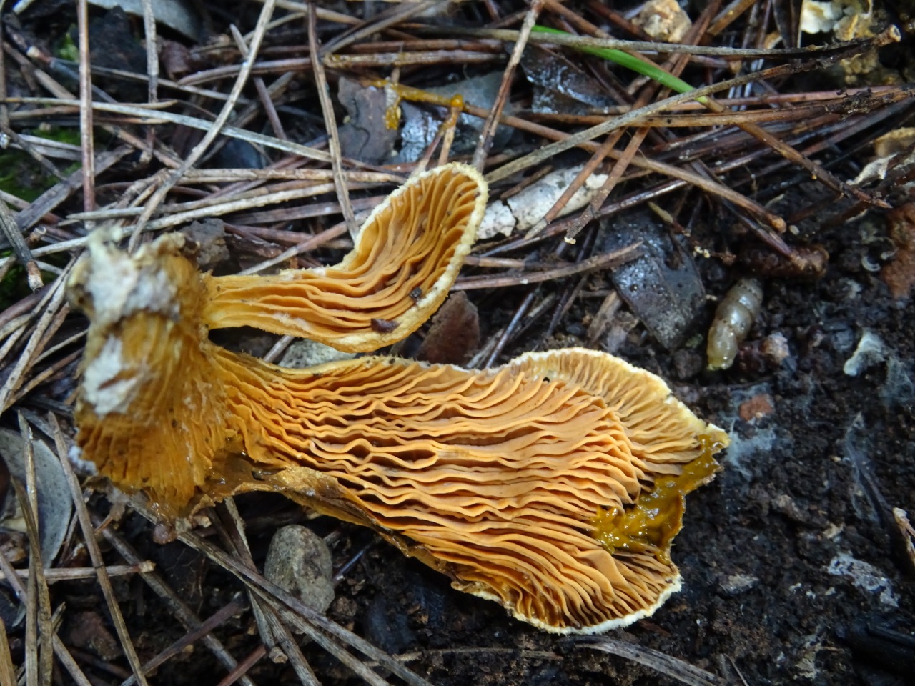 Dessous, les lames sont orangées, très hautes, sinueuses, souples et non cassantes.