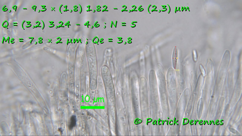 3 - les spores d'une dimension moyenne de 6.5x2 µm, ainsi que les paraphyses courtes et de diamètre 2 à 2.5 µm m'orientent vers le pas 4. (j'écarte donc D. claviculata)
