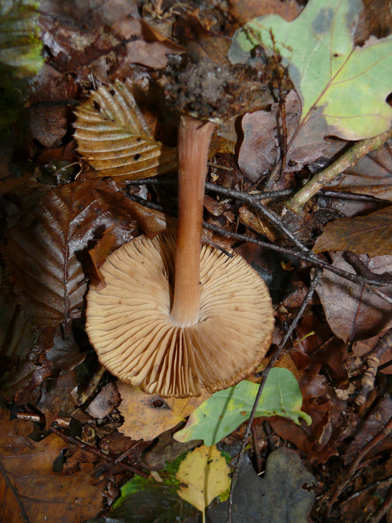 pour ce dernier de saveur douce et d'odeur neutre, trouvé dans une foret de feuillu, je pense a melanoleuca cognata un peu abimé, mais sans certitude . c'est pourquoi je fais appel a vous afin de voir si vous avez des pistes plus convaincantes. la couleur du stipe, et des lames semble pouvoir correspondre, mais la texture un peu en lambeau de la cuticule et la base blanche du disque me mettent dans le doute s'agit t'il de critére distinctifs d'un autre champignon ?