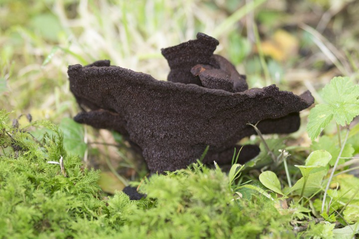 Ce qui est sûr c'est que dans une grande forêt de pins (je pense à l'Ospedale quand je vais en Corse ou à Ermenonville en région parisienne), de l'été (s'il a plu) à l'automne on a une très bonne chance d'en trouver un. Comme toujours, il faut se trouver au bon endroit au bon moment : contrairement à ce qu'on pense, les polypores se développent très vite (englobant souvent des herbes et des brindilles au passage) puis ensuite mettent des mois ou des années à vieillir : Phaeolus schweinitzii va être jaune pendant quelques jours ou semaines puis noirâtre pendant un an... alors mathématiquement on le trouve plus souvent noirâtre !