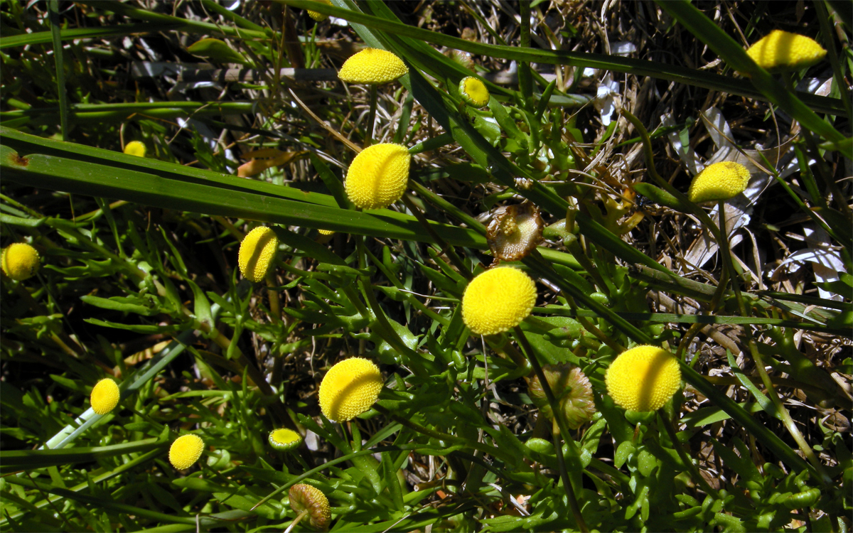 Je récapitule pour ceux qui n'auraient pas suivi : Cotula coronipifolia s'appelle "cotule pied-de-corbeau" en français parce que ses feuilles ressemblent à celles de Plantago coronopus, le plantain corne-de-cerf, aussi nommé "plantain pied-de-corbeau", lequel porte ce nom parce que ses feuilles évoqueraient les pattes d'un corvidé.