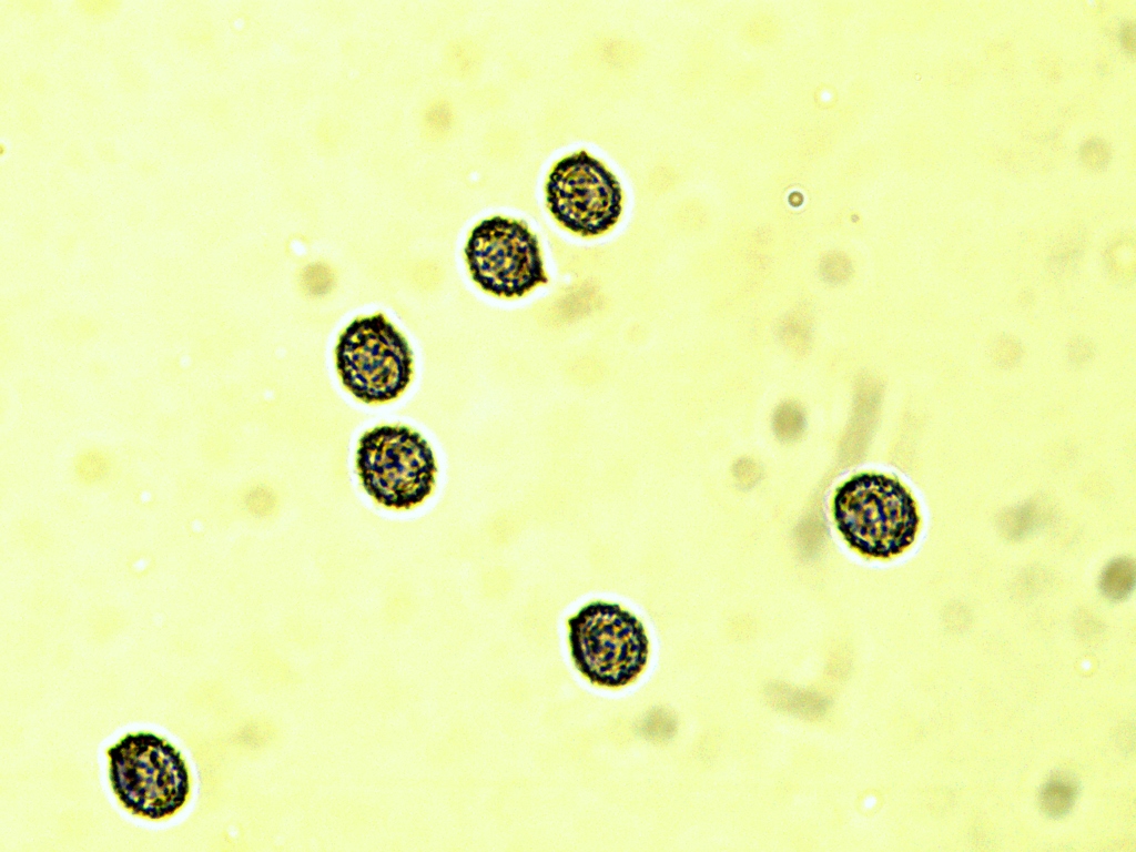 Spores : 7,3-8 x 5,9-7,3 µ légèrement réticulées.