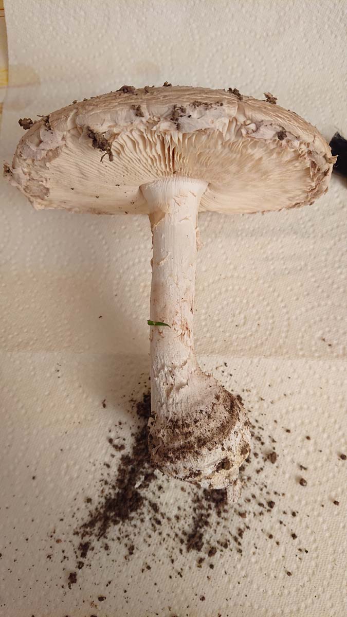 Pour strobiliformis, l'anneau présent ne correspondait pas vraiment à l'illustration présente dans le guide Bon, où on voit un anneau beaucoup plus cotonneux, alors que celui de mon specimen est un anneau descendant assez "classique". Après, dans le Courtecuisse, l'apparence est différente, plus proche d'un anneau classique. Par ailleurs, on observe bien la marge appendiculée, sur le specimen et il ressemble assez à celui qu'on peut voir sur la page Wikipedia de cette espèce : https://fr.wikipedia.org/wiki/Amanite_solitaire.