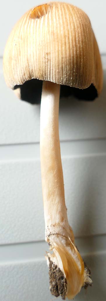 Plus aucune nouvelle de Pseudohydnum. Pourtant la couleur de la sporée était visible, il suffisait de passer un doigt sur les lames. Si on ajoute le profil parabolique du chapeau, le premier livre venu orientait vers les coprins.