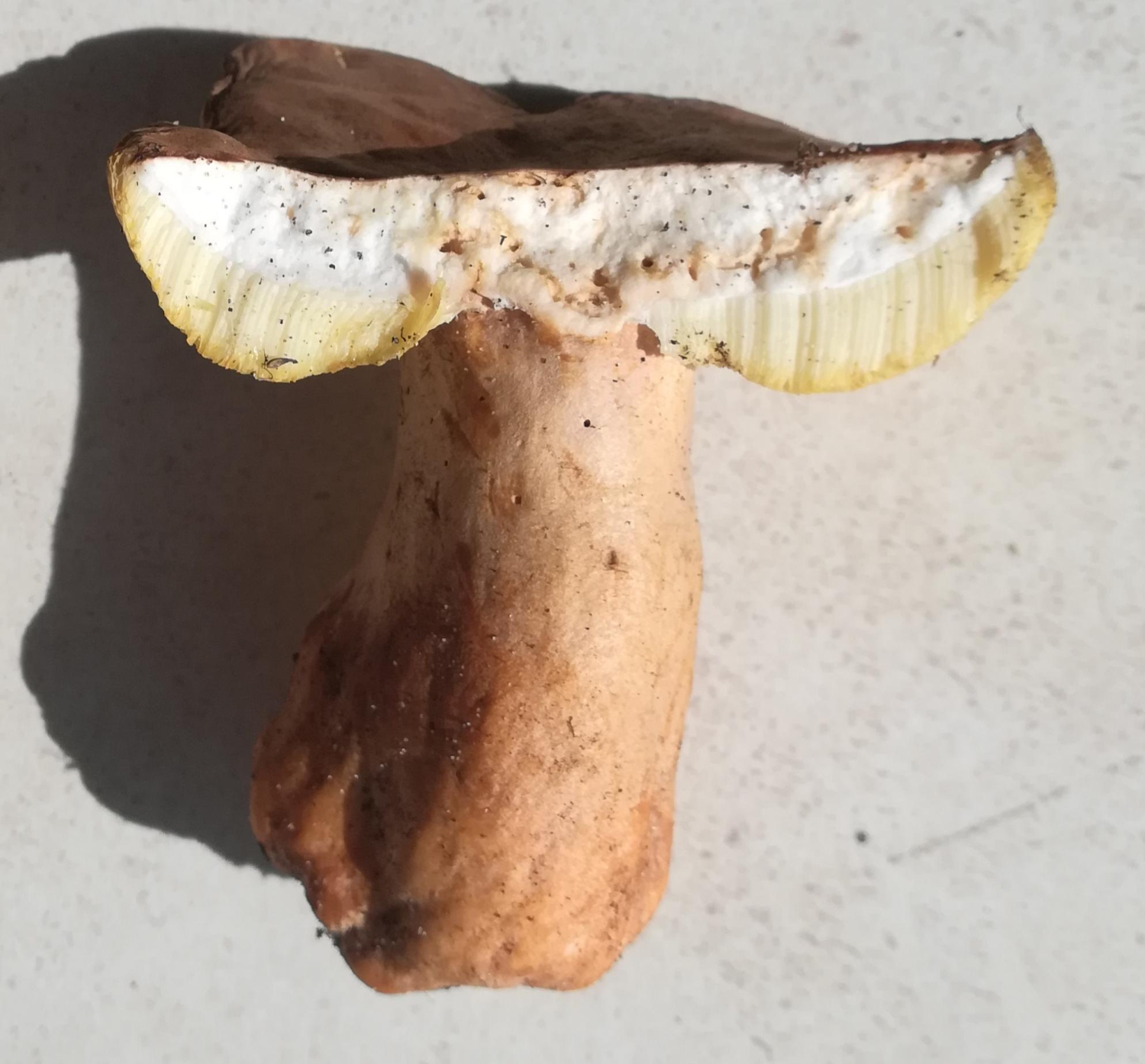 - en revanche, si tu pouvais (plus bas, sinon on ne comprend plus) nous mettre la photo d'une coupe longitudinale, ça aiderait ; c'est indispensable pour tous les bolets.