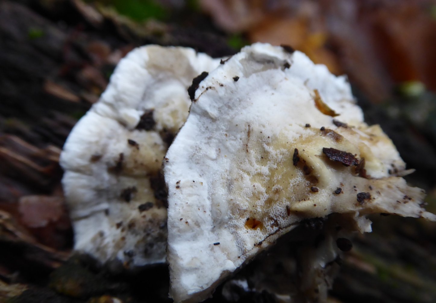 Pas de pores gris cendré, tout est blanchâtre. Je n'ai pas observé souvent Bjerkandera adusta.