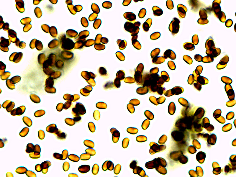 Les spores sont petites , de taille 3.5-4.5 x 2-2.5