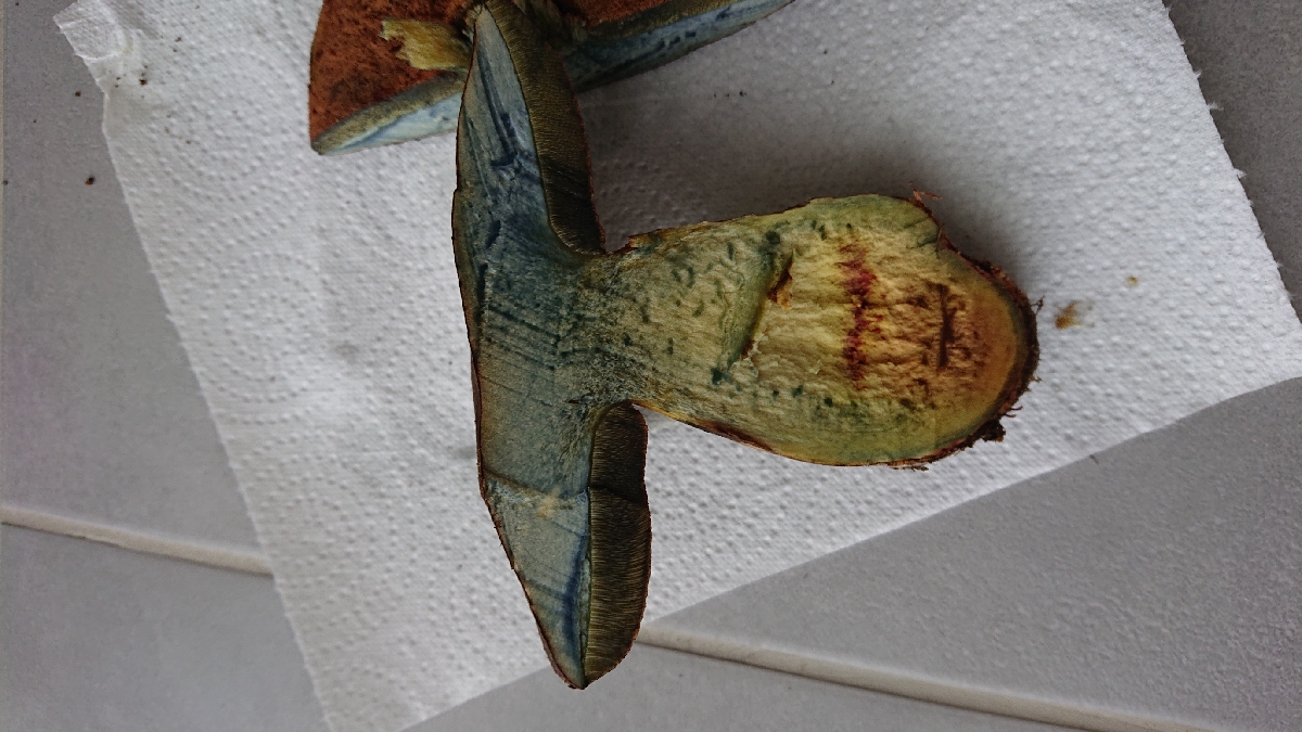 Fouad a écrit :Il y a N. xanthopus qui serait une bonne espèce, mais il faudrait s'assurer que les ponctuations concolores virent au brun au toucher, mais le chapeau devraient être brillant zébré de jaune. Ici, le pied est trop mangé pour pouvoir en jugerMerci pour cette référence, Fouad. Désolé de ne pouvoir confirmer, l'exemplaire étant à présent trop âgé. De mémoire, je dirais que les ponctuations viraient effectivement au brun (enfin, elles le sont déjà, mais elles brunissaient davantage). Mais sur d'autres parties du stipe, on observe du bleuissement, comme cela peut se produire au toucher chez les erythropus typiques. Je vais essayer de me documenter sur xanthopus, que je ne connaissais pas.