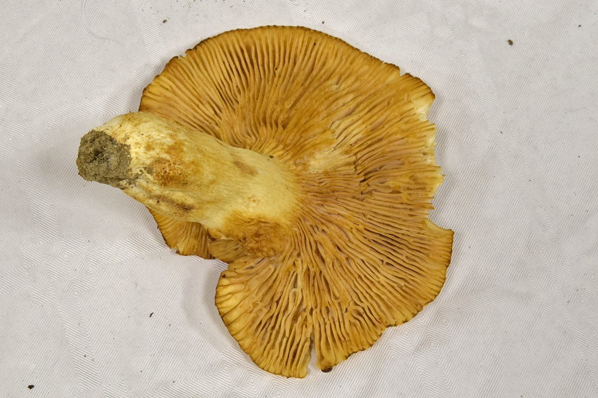 Sur le site de J-M Moingeon, les lames deviennent apparemment plus jaune au vieillissement : Russula farinipes