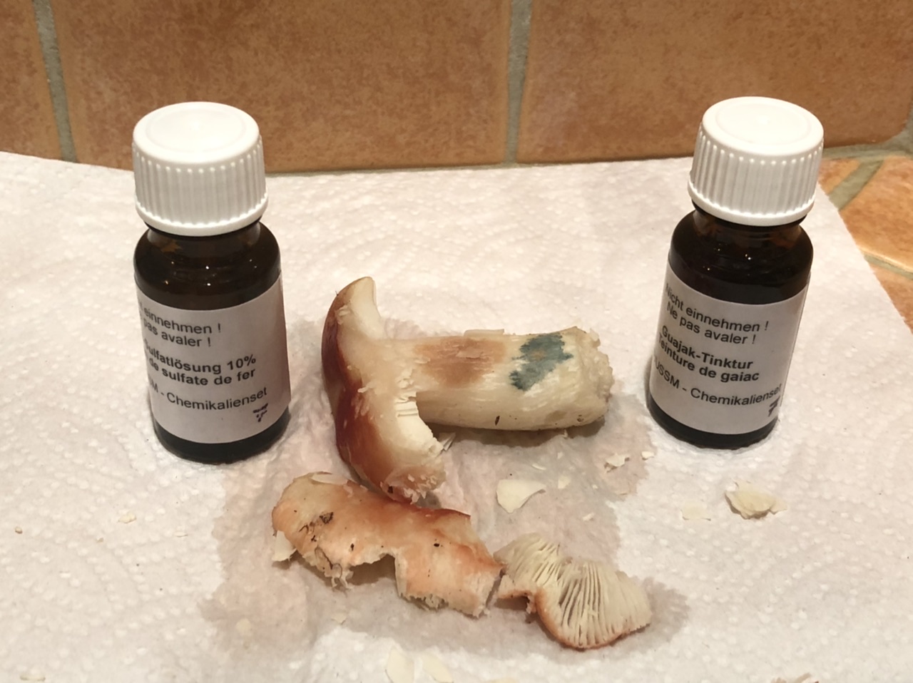 A la lampe de poche, j’ai eu la chance d’en retrouver quelques unes que le gel n’a pas complètement tuées (quand même bien ramollies...). La réaction est encore bien nette : rosé saumon au fer, bleu-vert au gaïac. Je pense qu’on peut donc rester sur R. mairei ?