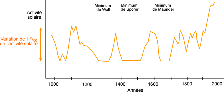 Voici également une courbe qui montre l'évolution de l'activité solaire au cours du dernier millénaire.