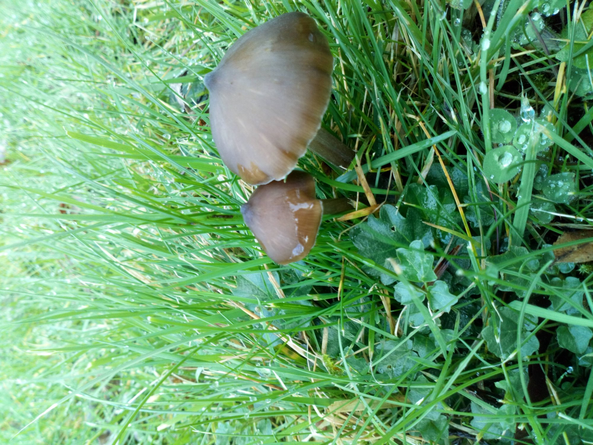 Trouvé hier quelques exemplaires de cet entolome, sur pelouse herbeuse / moussue d'un parc, à 20 mètres d'un pin. Quelques exemplaires presque en touffes.