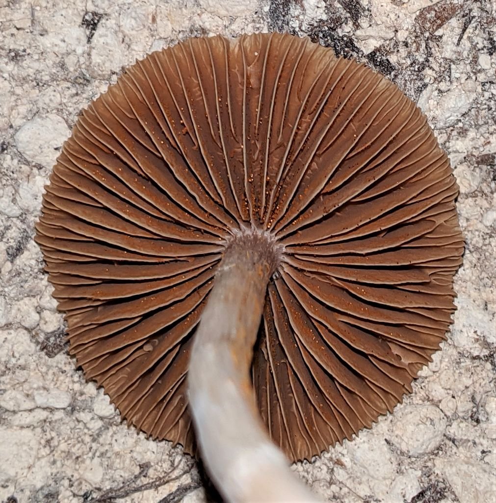 Sporée : fauve, présence de taches brun foncé (modification de la couleur de la sporée avec le temps ?)