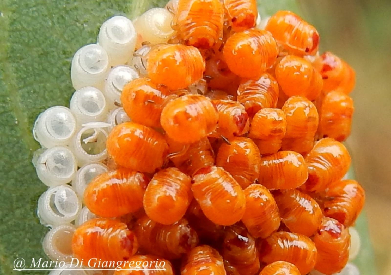 Ou cela ressemble aux Nezara.Bien rouge.Je ne sais pas si c'est le stade avancé avant chromatogénèse, mais ce sont bien des Hétéroptères sortant des œufs.