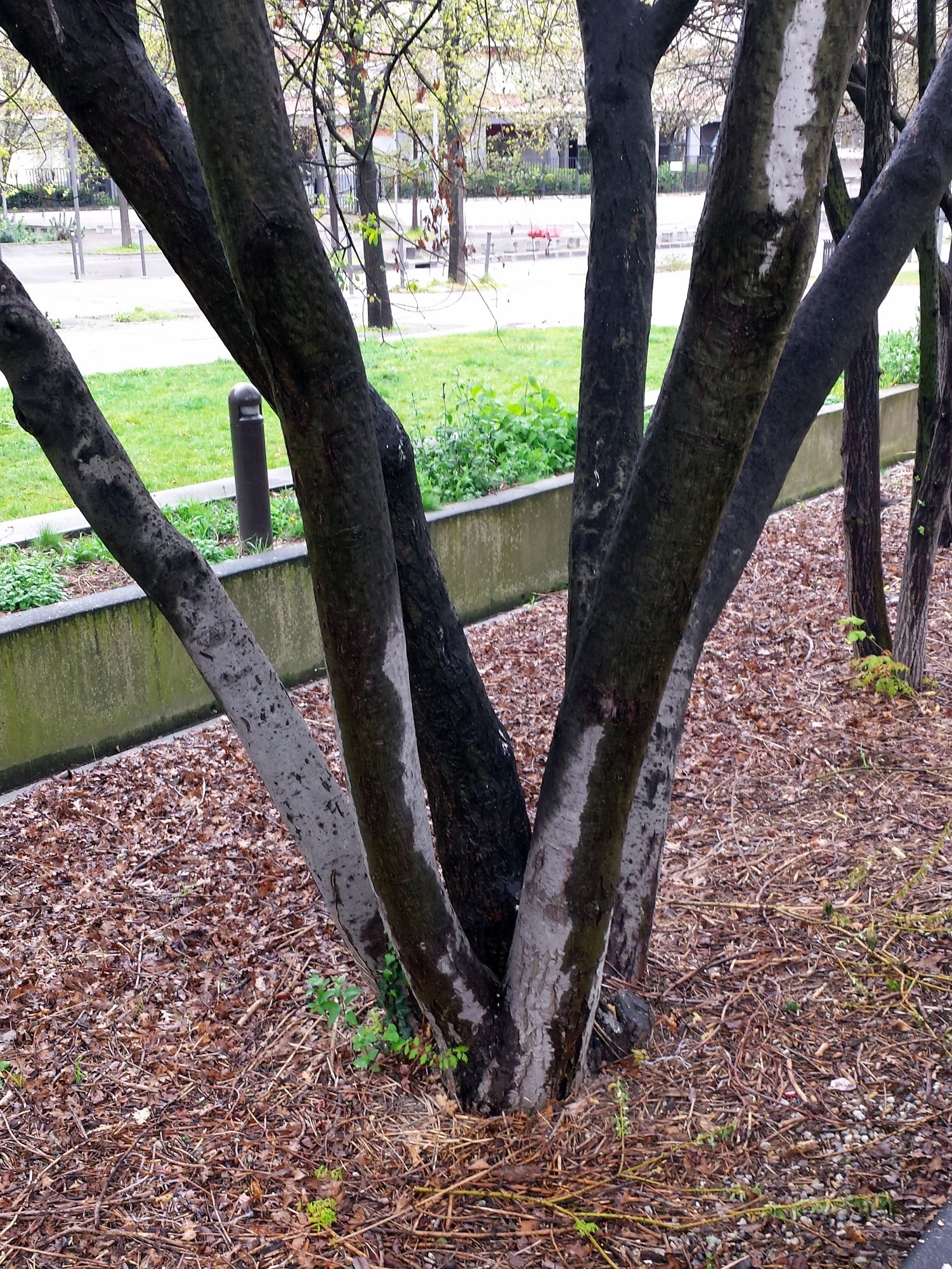 Toujours dans ma balade de dégourdissement dans les rues, j'ai aussi photographié cet arbre, savez-vous lui donner un nom, sachant qu'évidemment c'est une espèce cultivée ? Je peux retourner photographier l'arbre entier et l'écorce si ça peut aider.