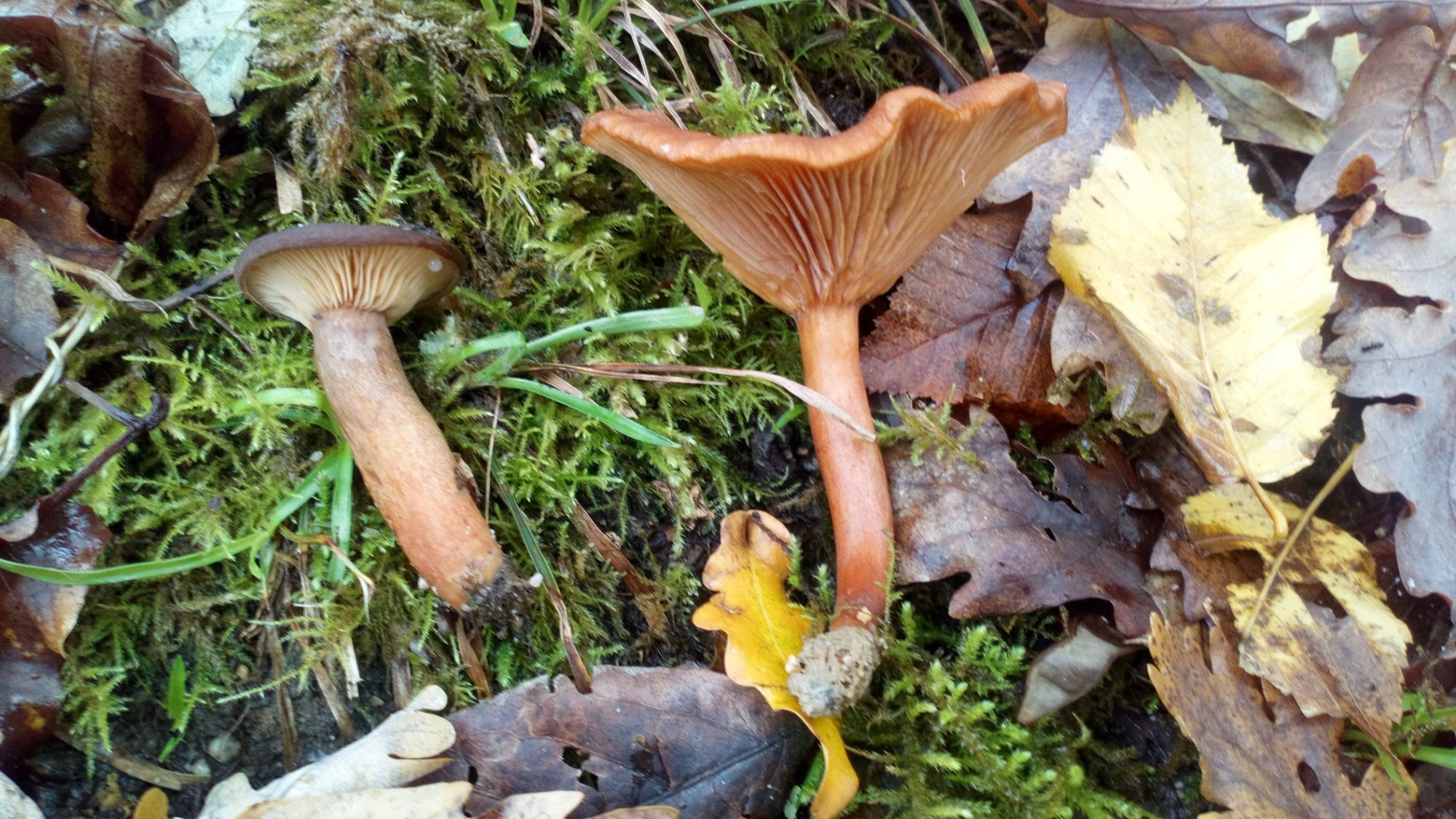 Je me suis fixé sur le festonné, Lactarius ruginosus qui est considéré par certains comme une variété de L. fuliginosus: la variété clitocyboides.