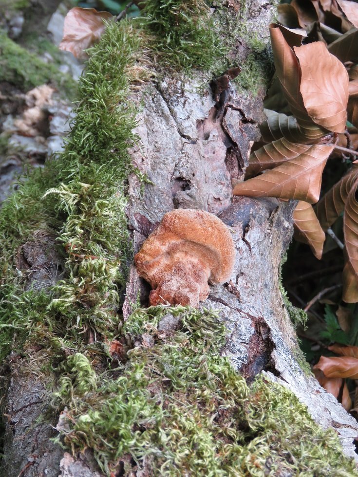Je pioche dans mes photos de l'automne dernier (mon début en mycologie!) et je vous présente ce polypore trouvé sur du bois mort le 09 septembre dernier. Nous étions dans une période de sécheresse (peut-être que ça peut aider). J'en suis arrivé par élimination à Trametes cinnabarina avec ces teintes rougeâtres. Les feuilles de hêtre à proximité donnent une idée de la taille du spécimen. Je n'ai pas d'autres idées. Merci d'avance pour votre aide.
