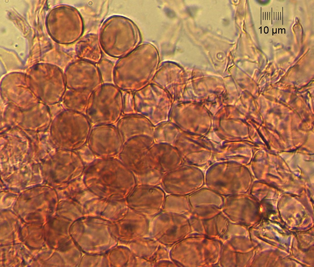 Les spores de P.chrysophaeus sont un peu plus grandes.