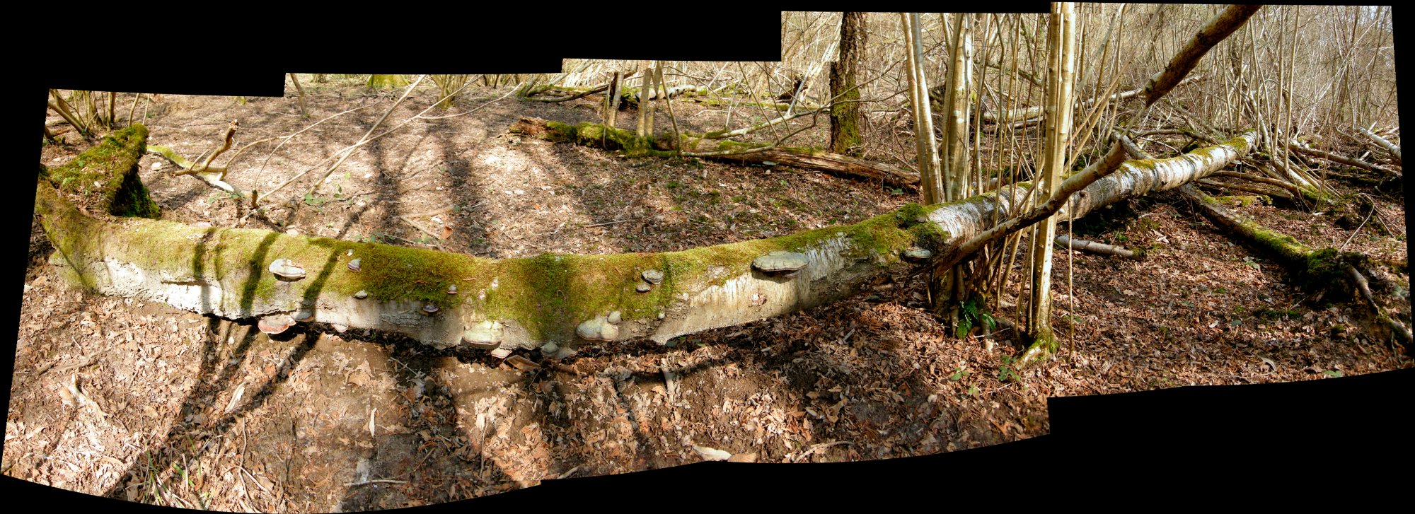 - 1) sur un autre rondin de bouleau au sol à moins d'un mètre (aïe la distanciation) , il y avait plusieurs F. pinicola, dont ceux-ci : - 2) tous les bouleaux morts ou moribonds de cette zone humide sont couverts à 10% de Fomitopsis betulina... et à 90% de Fomitopsis pinicola, c'est là que j'ai photographié en 2017 ce tronc qui portait une soixantaine de consoles : et (sur le même), cet exemplaire qui figure dans la galerie : - 3) sur le petit morceau que j'ai rapporté, la potasse sur les pores, les tubes et la chair produit une réaction rouge (rouille), virant au noir.