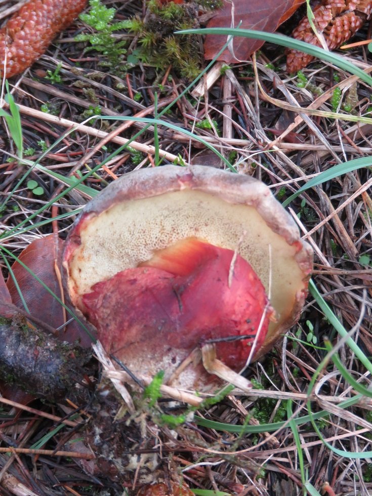 Vous n'avez pas plutôt l'impression d'avoir affaire à un Xerocomus, ici ? Les pores semblent assez amples, non ? En plus, on distingue (peut-être) du rouge sous le revêtement, un peu comme on l'observe dans X. pruinatus (c'est un exemple, pas une proposition, faute de coupe).