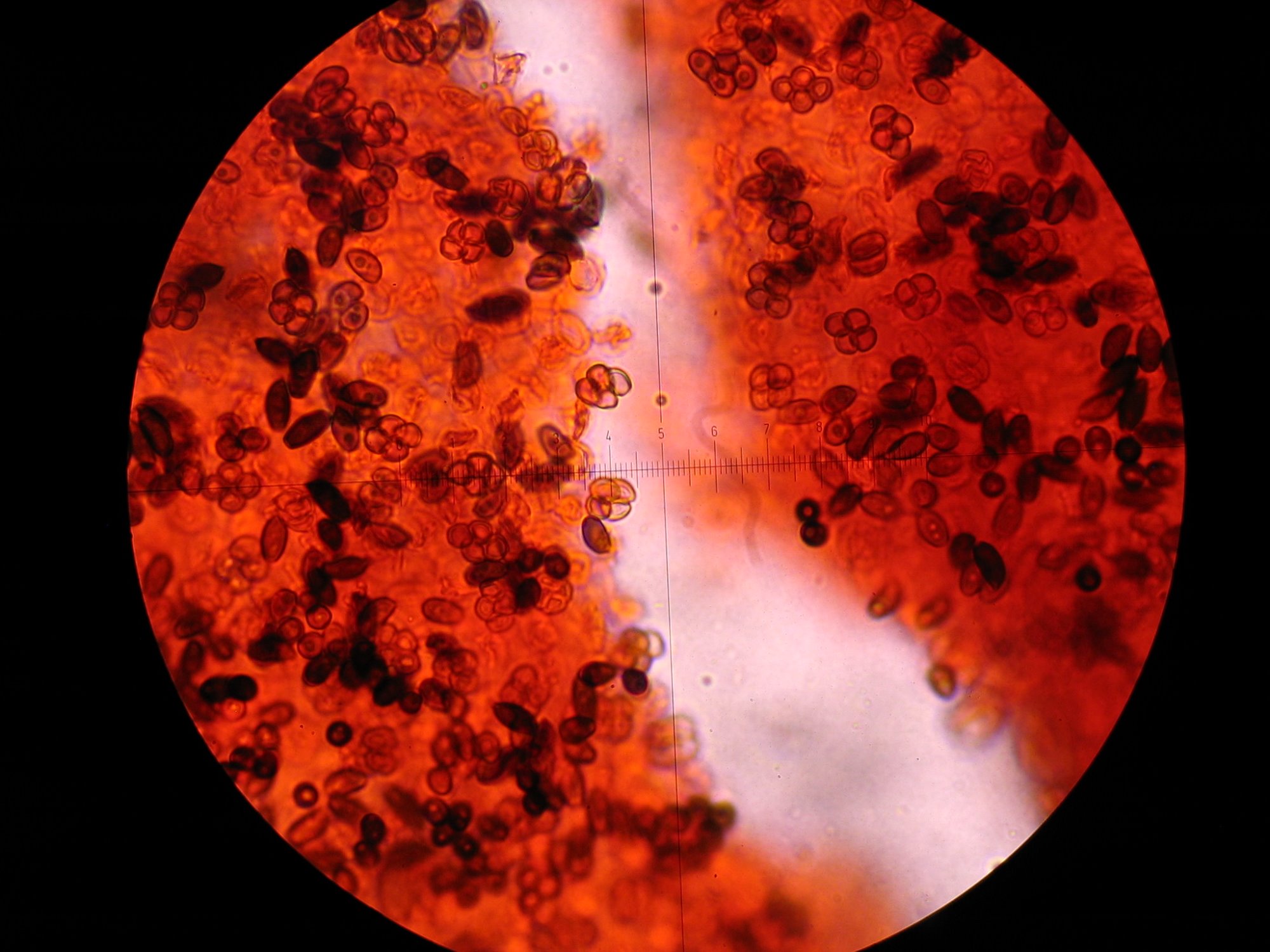 Donc... basides tétrasporiques, spores ellipsoïdes, pore germinatif central, semble-t-il.