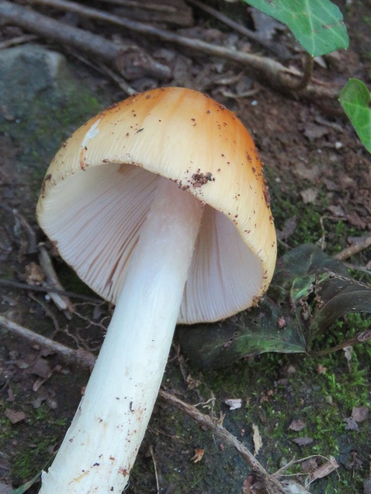 Voici quelques photos d'une amanite observée aujourd'hui commune de Mouret (12) sur rougier à 400 mètres d'altitude. Les essences situées à proximité : tremble, chataîgner, noisetier, chêne. Je n'ai pas réussi à récolter la totalité du pied (volve absente).