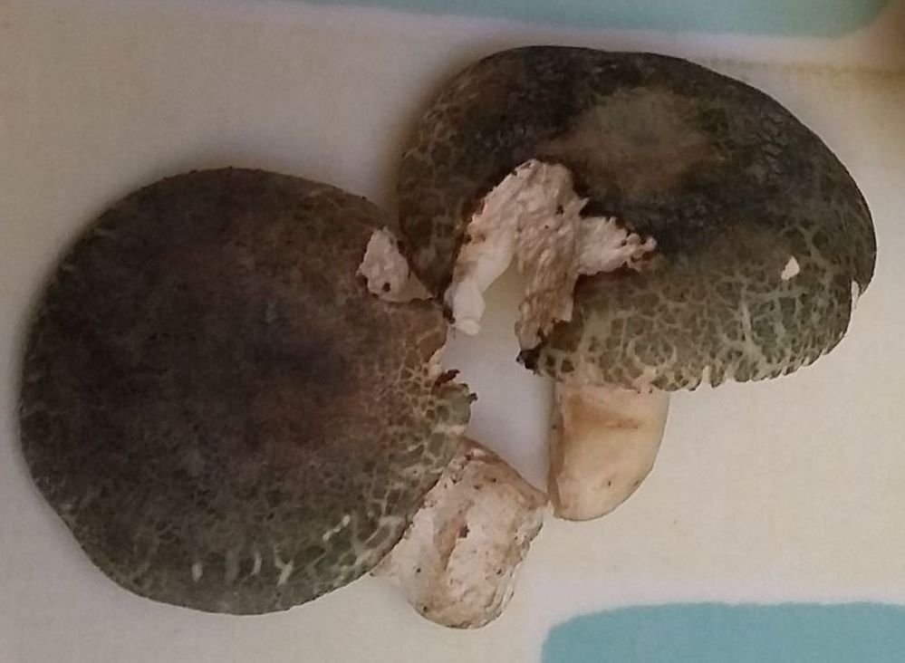 j'imagine que tu les avais nommées Russula virescens... mais on distingue une nuance violacée sur le chapeau, laissant à penser qu'il pourrait plutôt s'agir de R. cyanoxantha f. cutefracta.