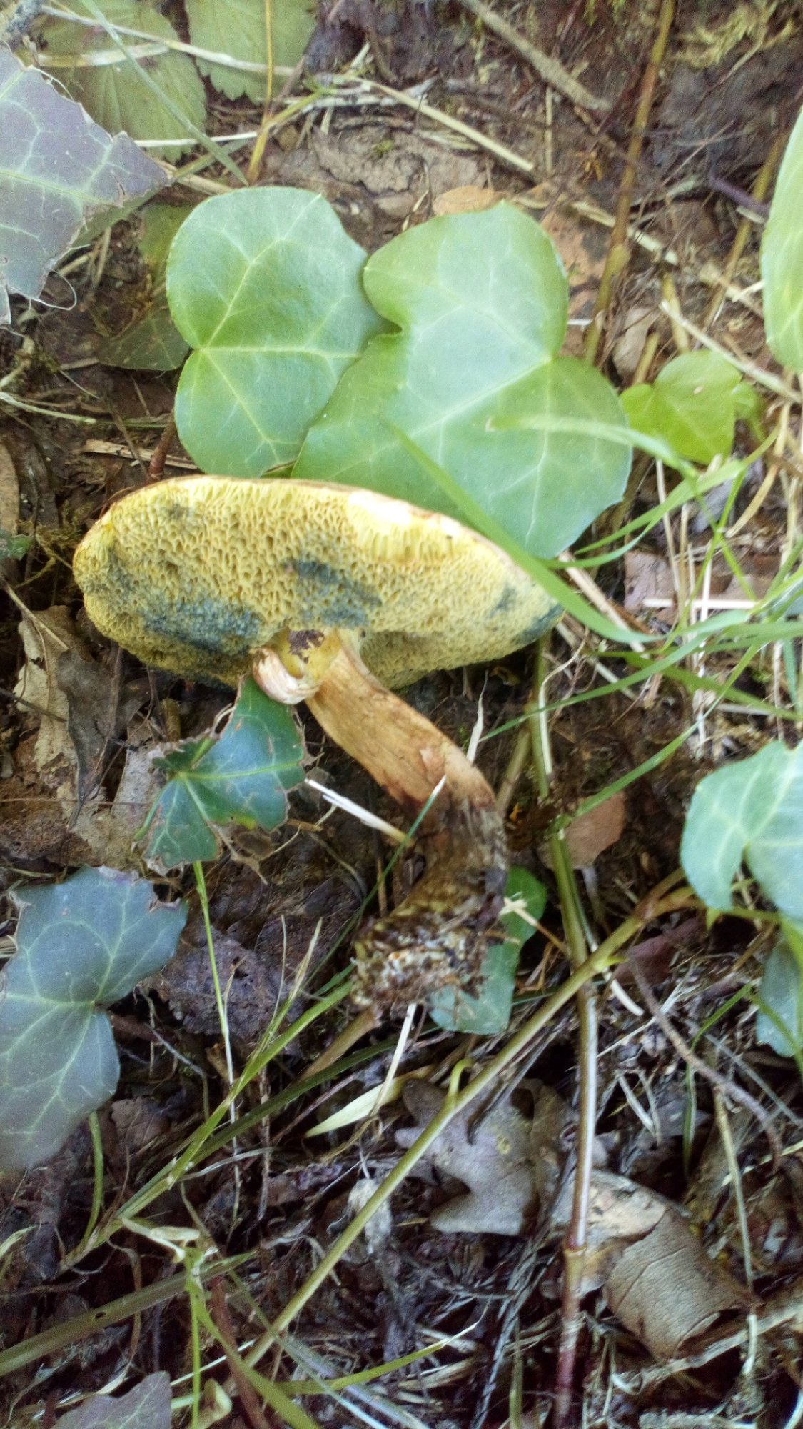 Au premier abord, hésitation entre porosporus et chrysenteron. Ta description d'une chair rougeâtre puis brun olivâtre correspond assez bien à ce dernier, mais il est difficile d'appréhender l'étendue de la coloration rougeâtre sur la photographie de la coupe.