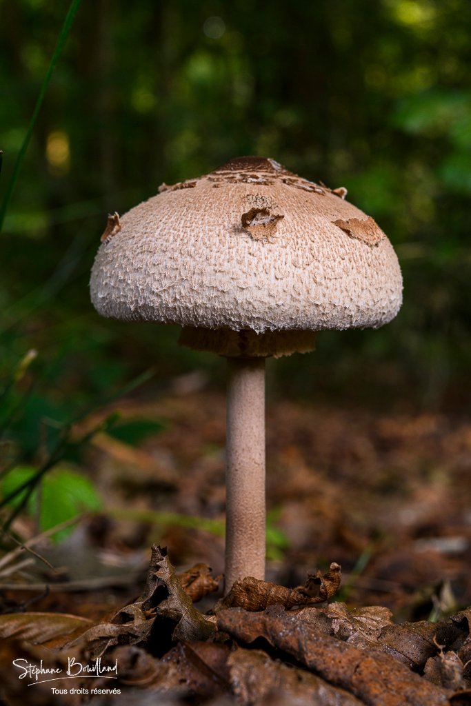 Celle-ci me semble bien correspondre à la description de Macrolepiota procera, qu'en pensez-vous ? Toujours en forêt de Crécy, sous les hêtre, d'une hauteur de 15-20 cm.