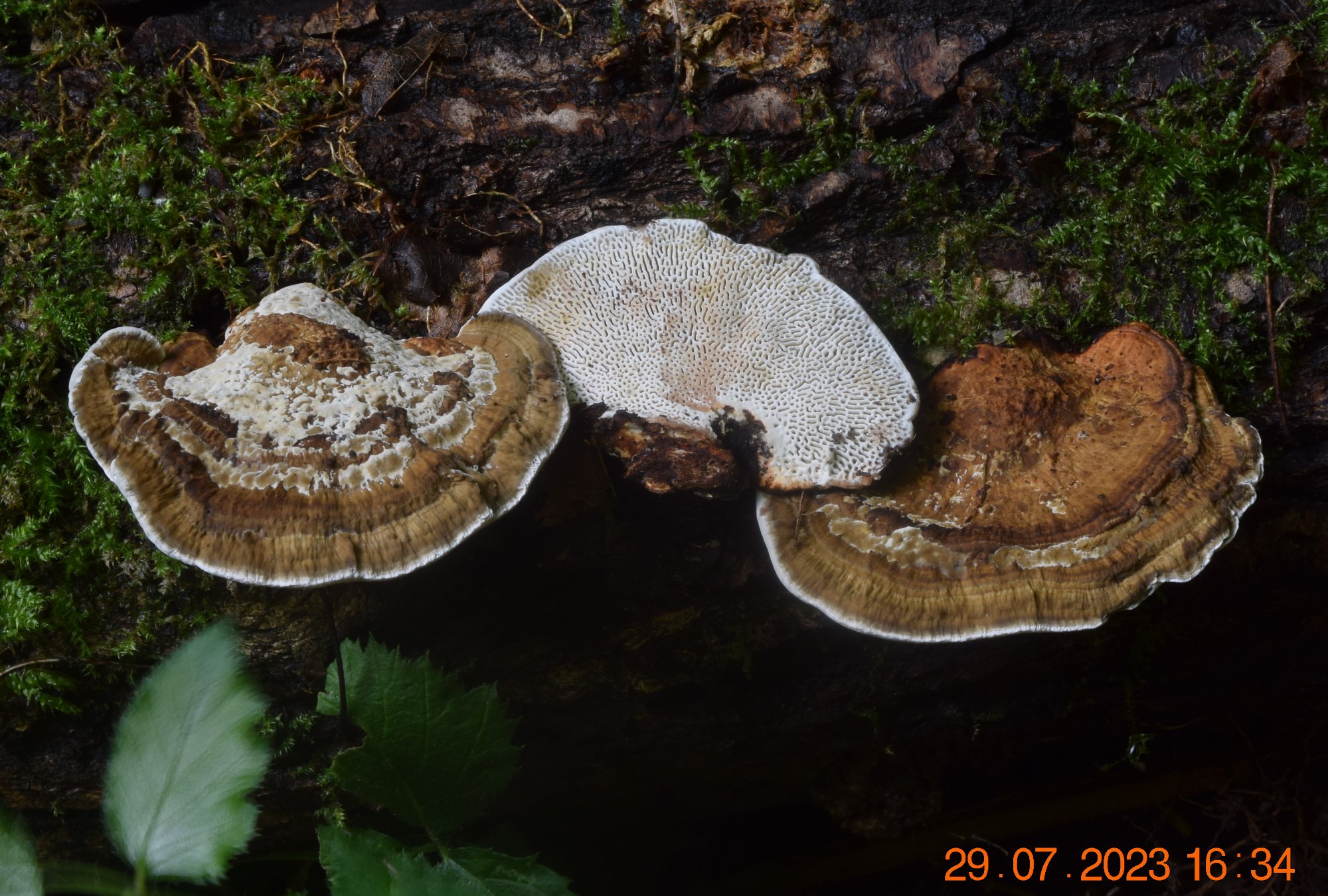 Dans la vieillesse, le champignon prend des tons rouges sombres rappelant D. tricolor et un hyménium couleur pain d'épices. Chemin de Rossignol - Arconsat (63).