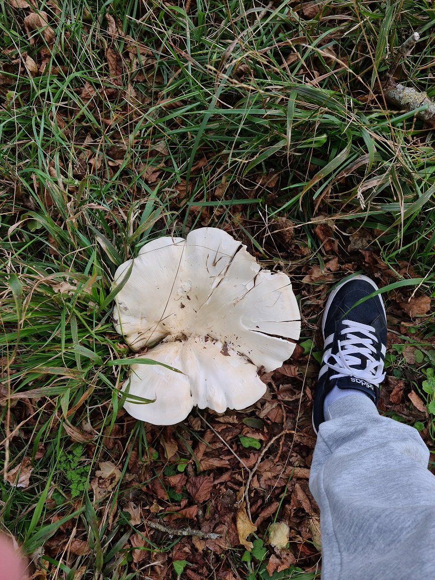 Ou alors, peut-être Clitocybe maxima (autrefois variété de geotropa, j'ignore son statut actuel).