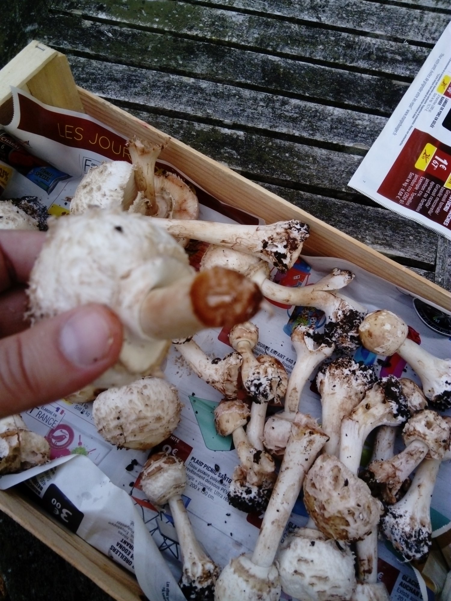 18 oct. 2020, 23:11tomy89 a écrit : Et la base du stipe est un bulbe contrairement au rachodes ou la base du stipe d'élargie mais pas de manière abrupte. Sur mes photos trouvez vous que ça change de façon abrupte??Certains bulbes au fond de la cagette m'ont effectivement alerté aussi sur la possibilité que ces champignons soient des Chlorophyllum brunneum.