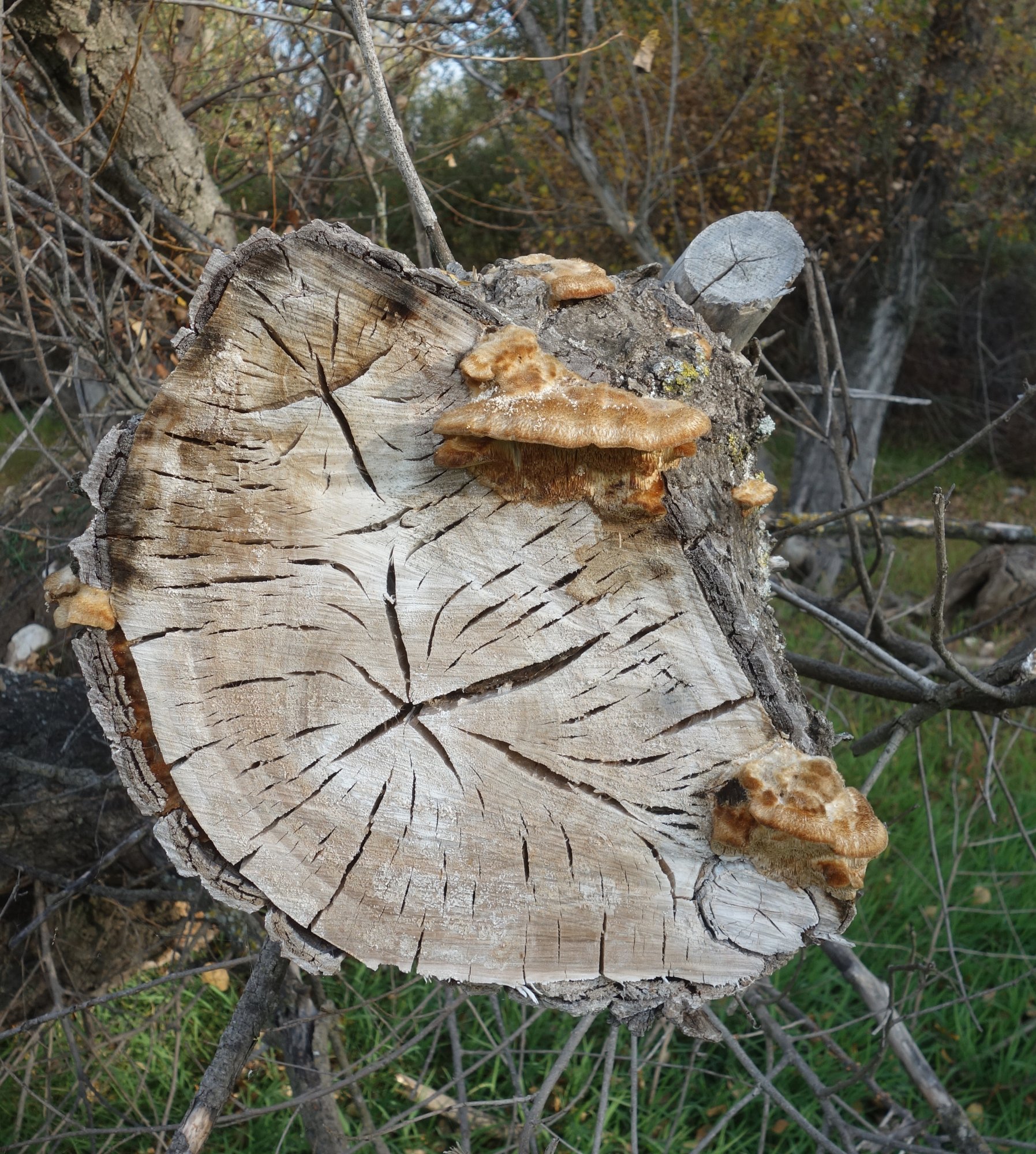 PS 2 : j'ai retrouvé mon sujet de 2016 où avait été déterminé Funalia/Coriolopsis/Trametes trogii. Vers la fin (le sujet s’étend sur 2017) on voit ce que les spécimens étaient devenus sous la dent d'insectes mycophages : viewtopic.php?f=1&t=15288