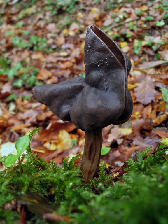 Oui, je suis d'accord avec moi-même pour Helvella crispa. H. lacunosa est un champignon quasi-noir : https://www.mushroomexpert.com/helvella_lacunosa.html.
