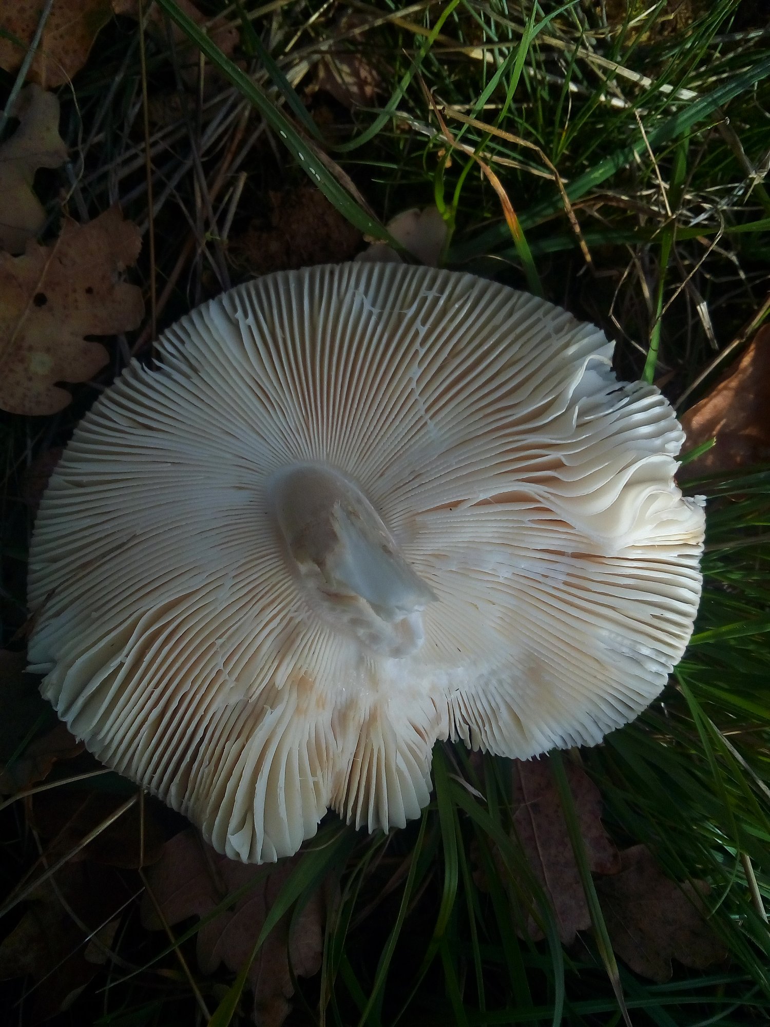 Ces deux chapeaux sont ceux que l'on pouvait voir sur la 3e photo du premier message. Les lames de l'un sont vraiment blanches, et pour l'autre elles sont brunes uniquement à l'arête, blanches plus en profondeur (on voit le blanc sur les parties abîmées).