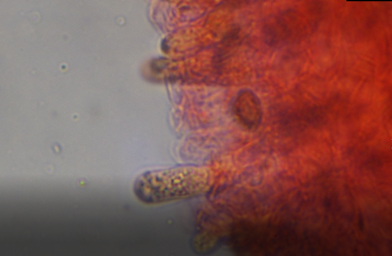 Pour les cystides pas simple, les photos 1-3-4-5 représentent des basides. Il faut essayer de faire une coupe très fine de l'arête.