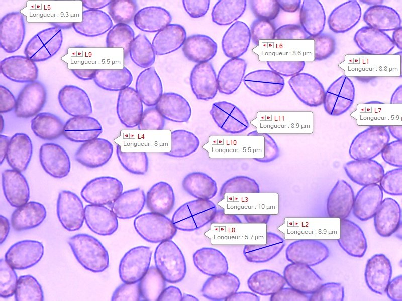Les spores ont pour dimension autour de 8-10 x 5.5 -6 µm.