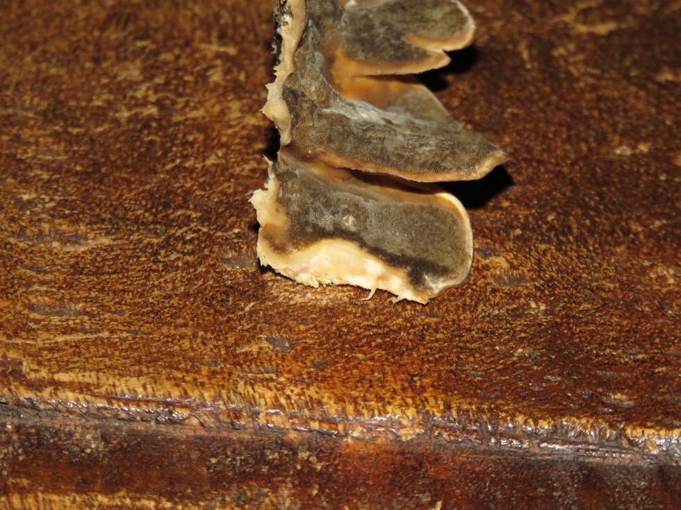 Champi12, tu en es où de la coupe demandée par Fouad ? On sait déjà que la chair est probablement blanche (2ème photo) mais c'est toujours intéressant de voir le profil du champignon avec l'épaisseur de la chair, celle des tubes etc. Fais la coupe du bord vers le centre, comme là.